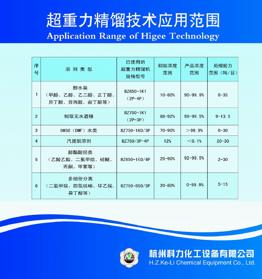 超重力精餾技術(shù)應(yīng)用范圍